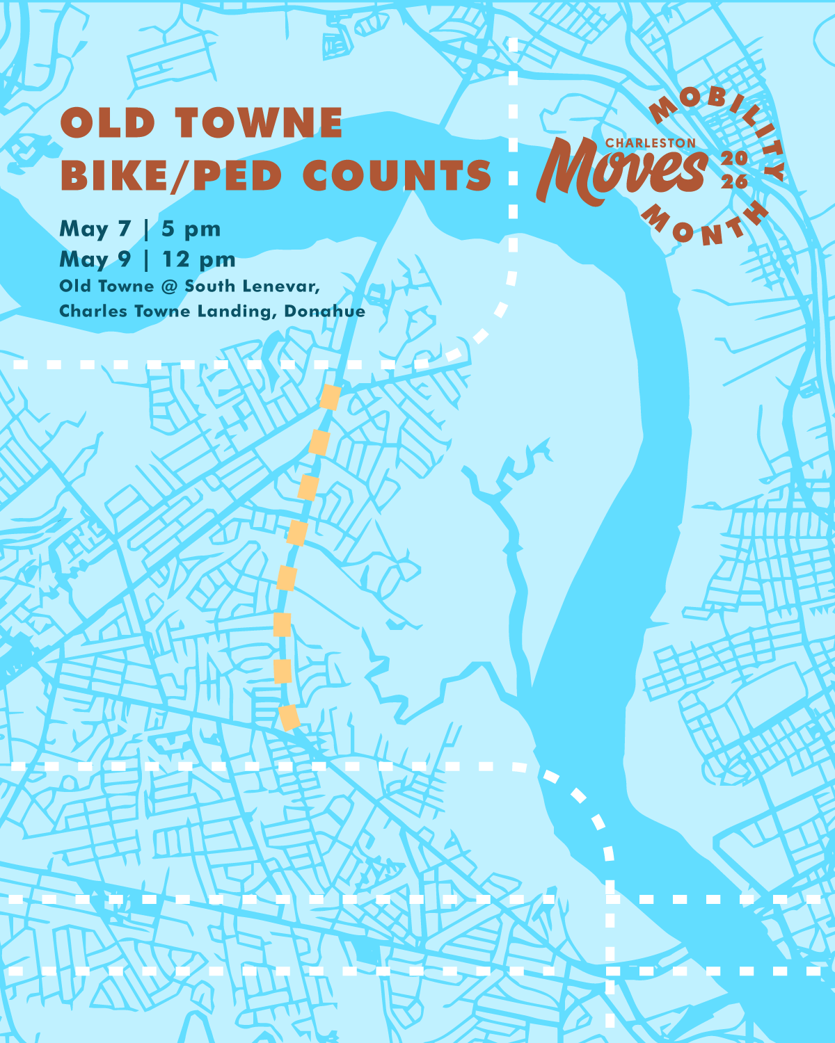 Series of bicycle and pedestrian counts along West Ashley’s Old Towne Road to document use and travel patterns in areas with recent and forthcoming improvement